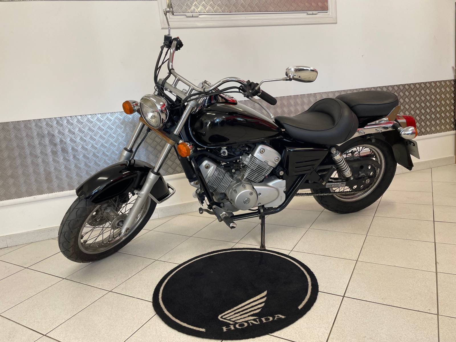 Le magasin San'Scoot Sanary - Ollioules vous propose à la vente en occasion cette moto 125 Honda Shadow style custom modèle emblématique, en parfait état de marche.