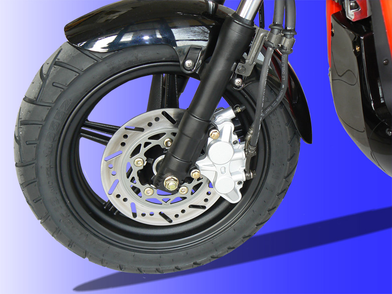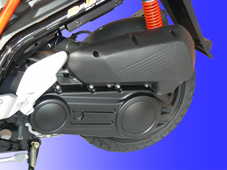 Il est pourvu du fameux système de freinage intégral agissant sur le disque avant et arrière, un brevet Daelim.